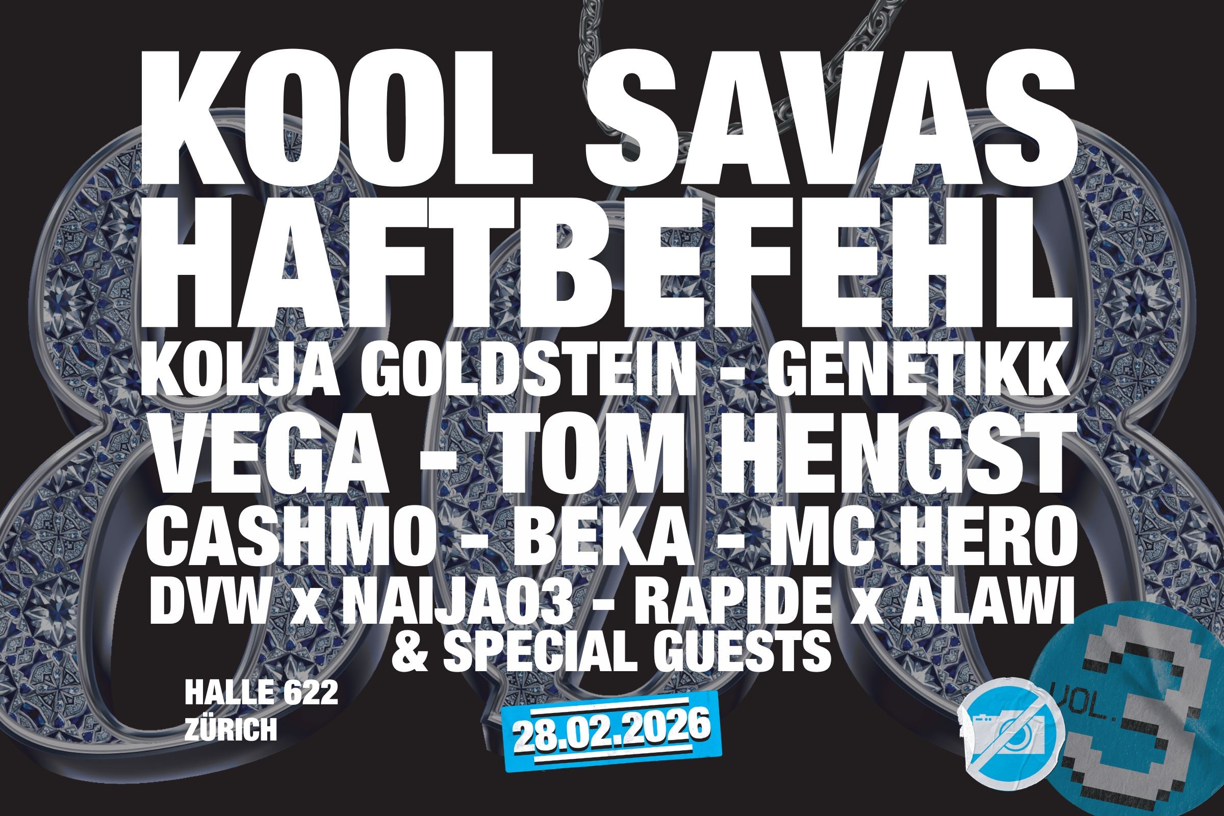 Das 808 Zürich Festival Volume 3 findet am 28. Februar 2026 in der Halle 622 in Zürich statt. Das Festival bringt einige der bekanntesten Namen aus dem deutschen und schweizerischen Rap live auf die Bühne. Mit dabei sind Kool Savas, Genetikk, Kolja Goldstein, Tom Hengst, Beka, Cashmo, Rapide x Alawai, MC Hero sowie DVW x Naija03.